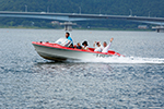 遊覧船アンソレイユ号発着所の隣の桟橋から出発し、富士五湖で2番目に大きい湖、河口湖をモーターボートで遊覧します。お好み・予算に合わせて5つのコースを用意しています。